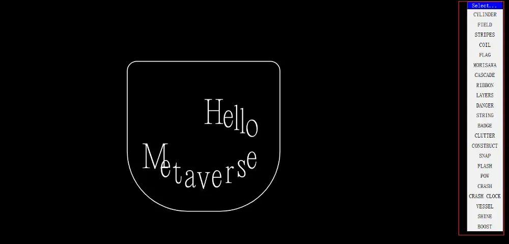 - RIBBON (丝带): 文字像丝带一样在空间中穿梭弯曲。